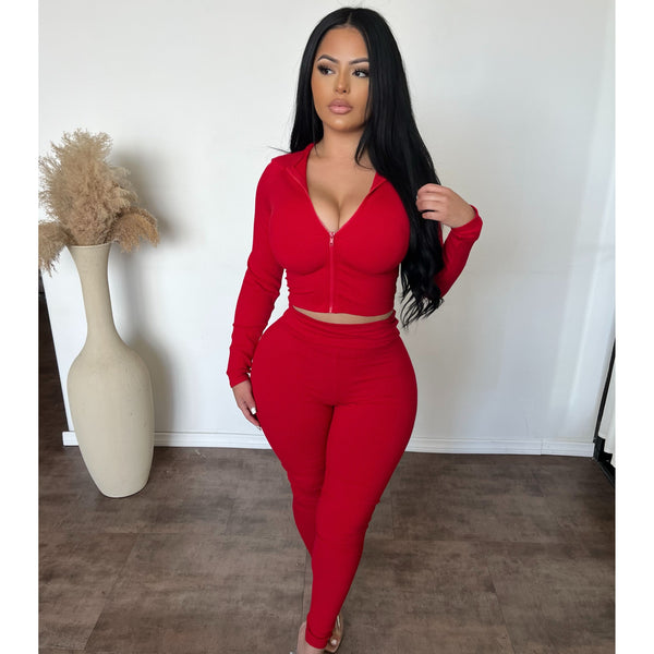 Bianca Snatched Zip Up Hoodie W Matching Leggings (Red)