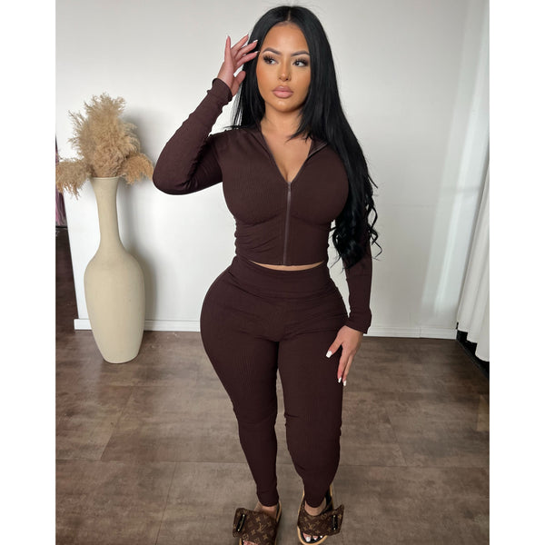 Bianca Snatched Zip Up Hoodie W Matching Leggings (Chocolate)