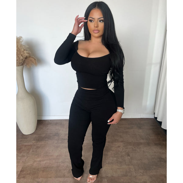 Denise Snatched Ribbed Scoop Neck Matching Set (Black)