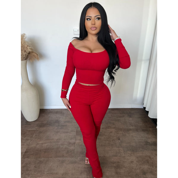Denise Snatched Ribbed Scoop Neck Matching Set (Red)