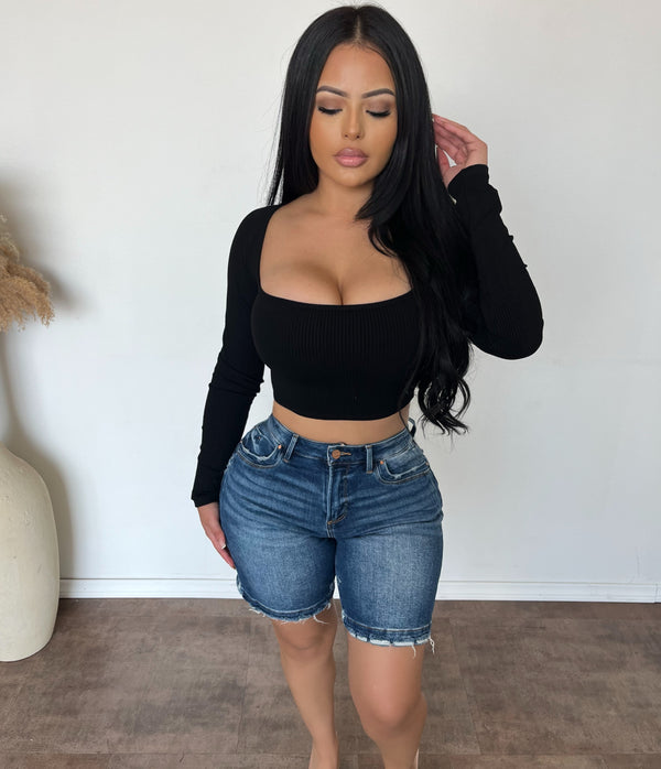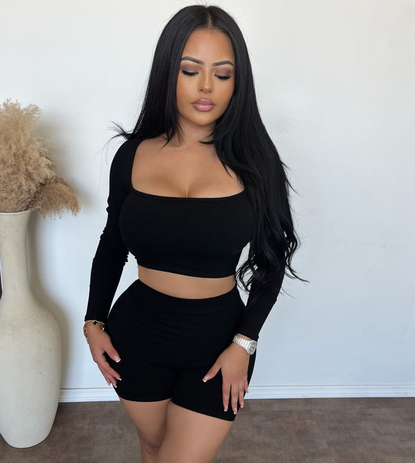Iris Shorts W Long Sleeve Square Top (Black)