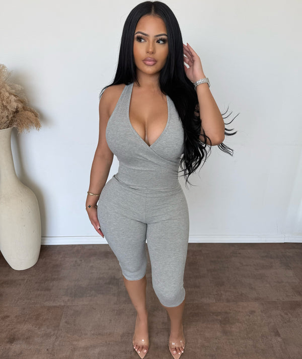 Serena Halter Neck Snatched Jumpsuit (H Grey)