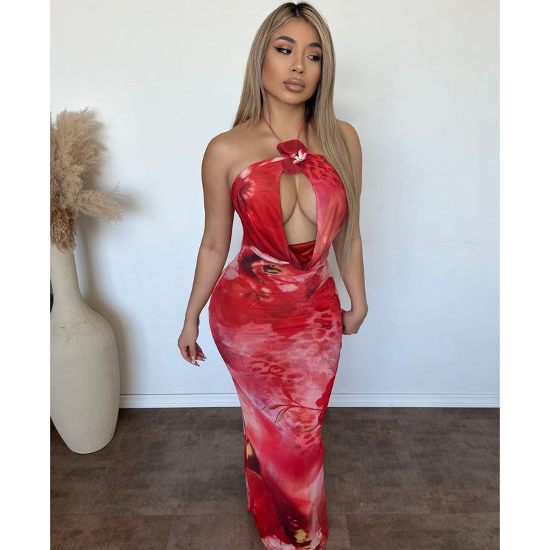 Anna Mesh Dress (Orange/Red)
