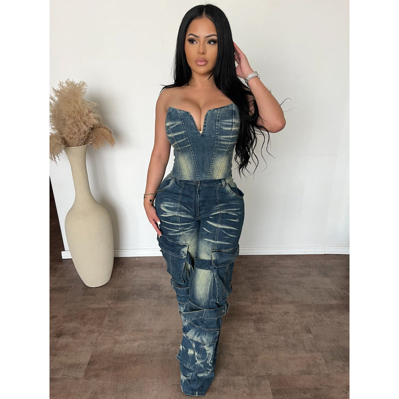 Angelica 2 Piece Matching Jean Set W Stretch (Dark Vintage Wash)