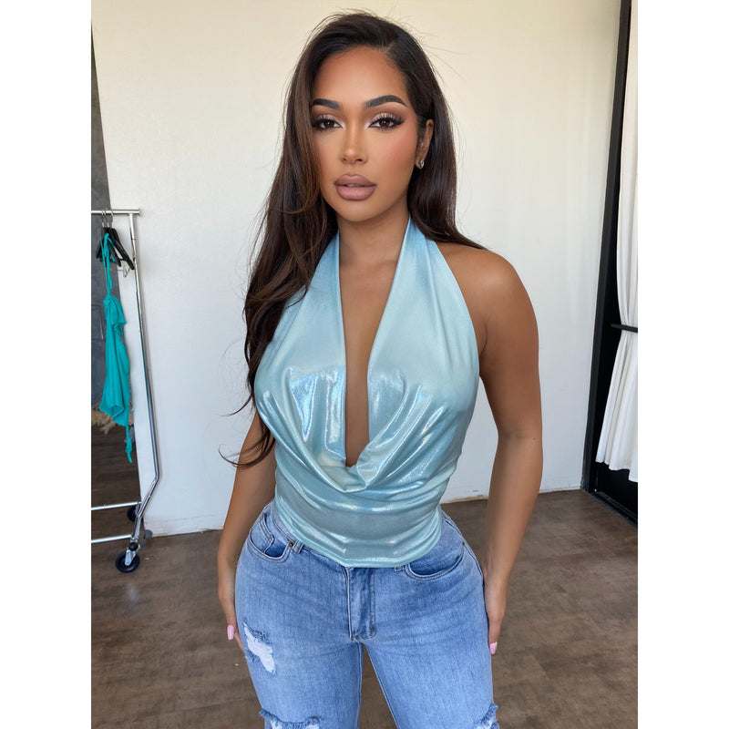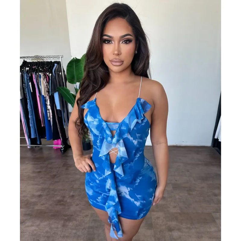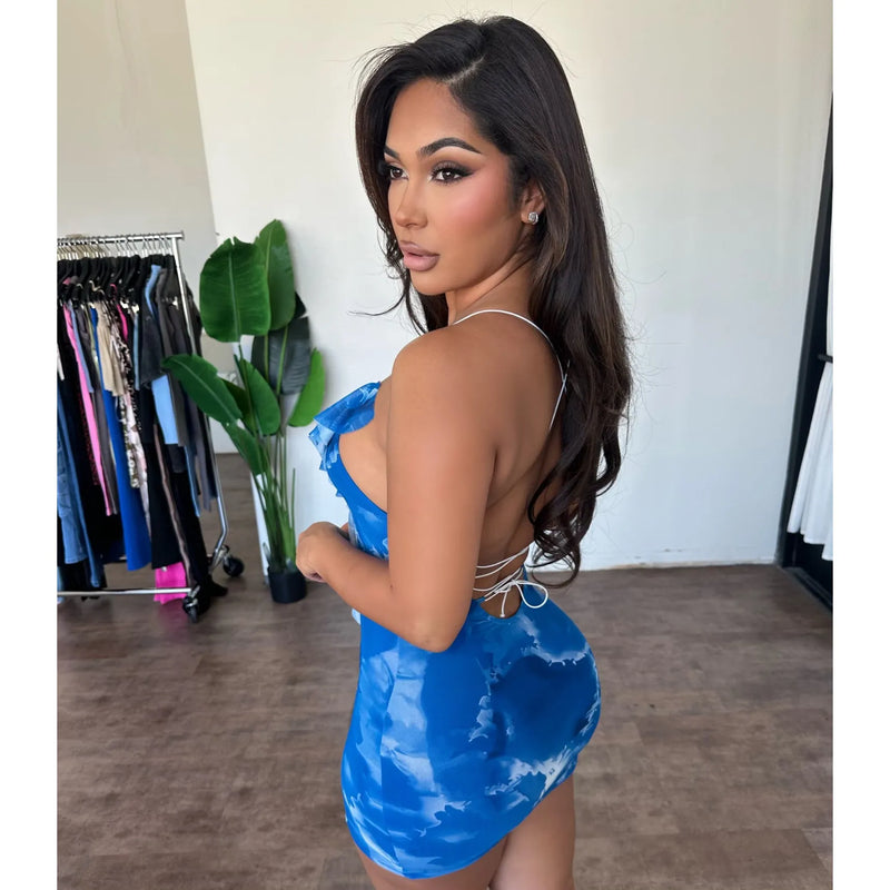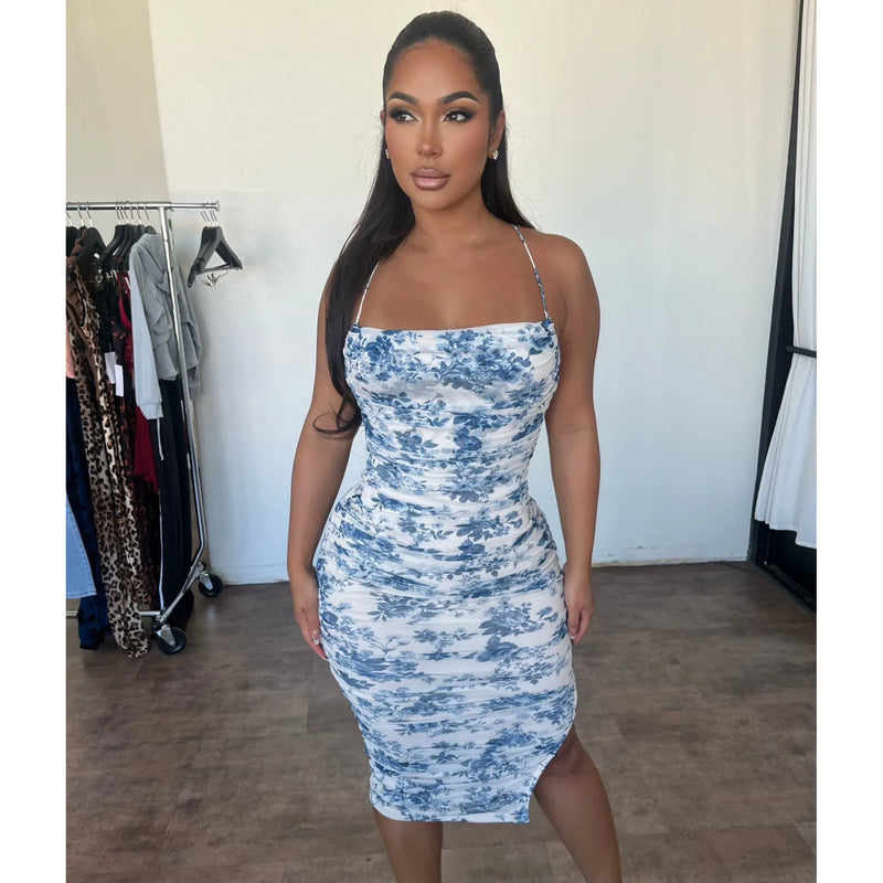 Emily Tropical Halter Neck Dress (Blue/Green)