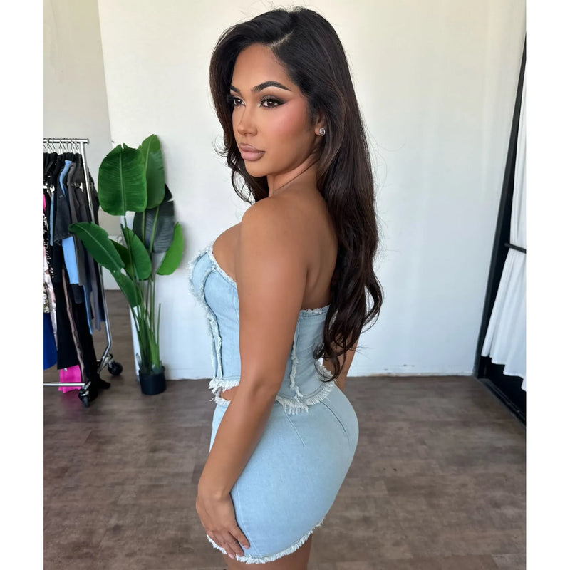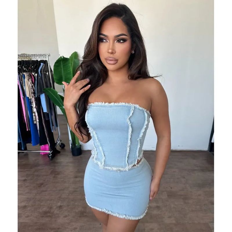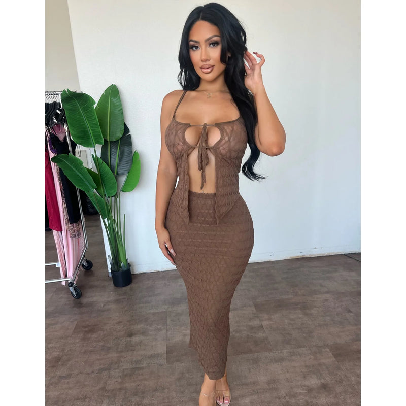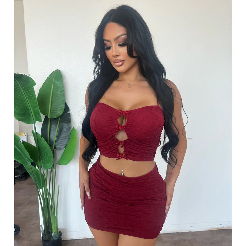 Addison Pinstrip 2 Pice Skirt Set (Black)