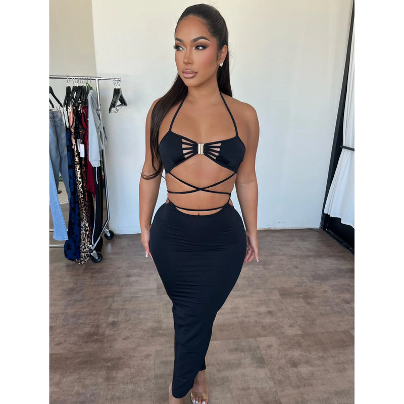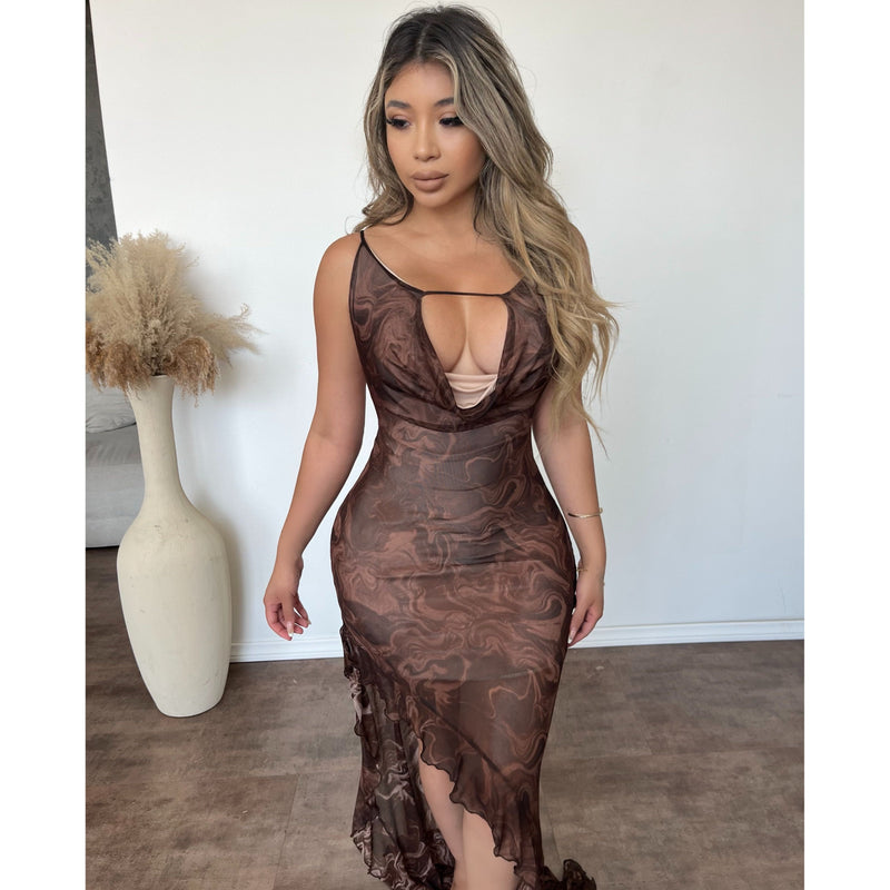 Melisa Snatched Round Neck Mid Dress (Chocolate)