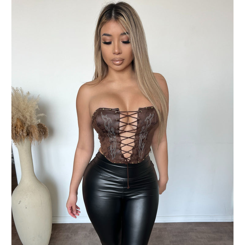 Elena Tie Front Corset Top (Chocolate)