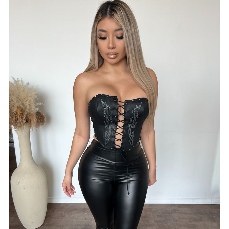 Elena Tie Front Corset Top (Black)