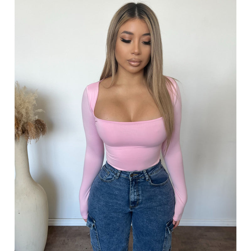 Dora Square Neck Long Sleeve Top (Soft Pink)