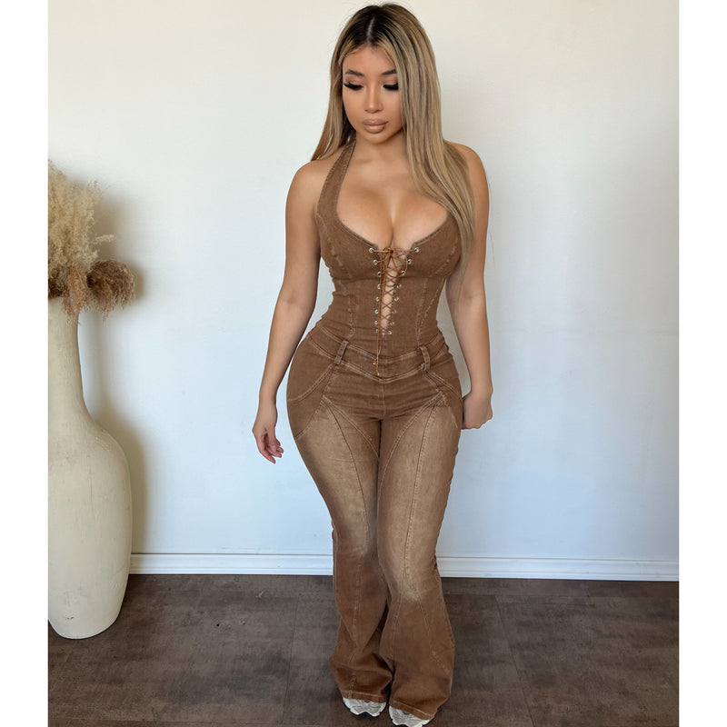 Maddy Stretch Jean Jumpsuit (Camel Vintage)