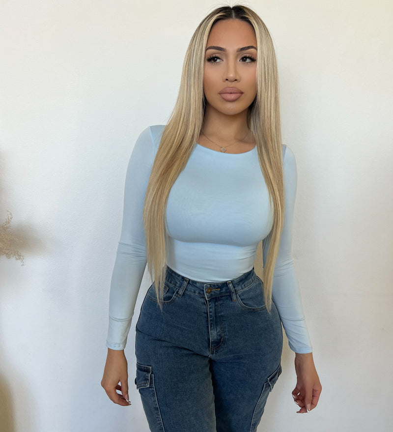 Sarah Round Neck Long Sleeve Top (Baby Blue)