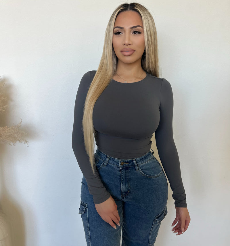 Doreen Scoop Neck Long Sleeve Top (DK Grey)