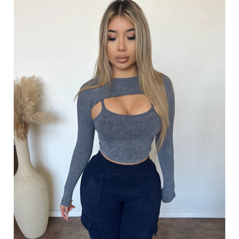 Kayte Crew Neck Long Sleeve Top (Ash)