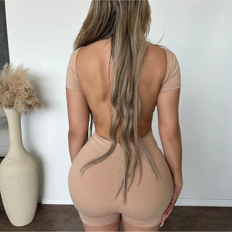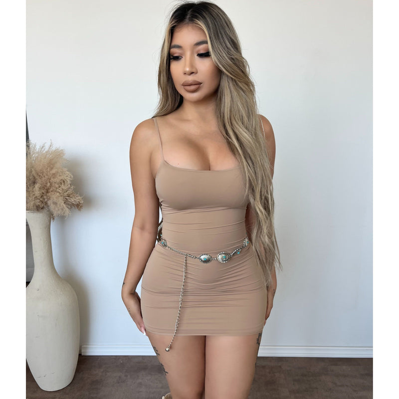 Rachel Sleeveless Halter Mini Dress (Brown)