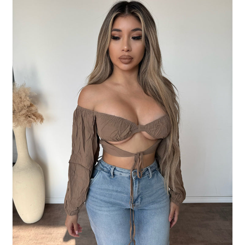 Doreen Scoop Neck Long Sleeve Top (Mocha)