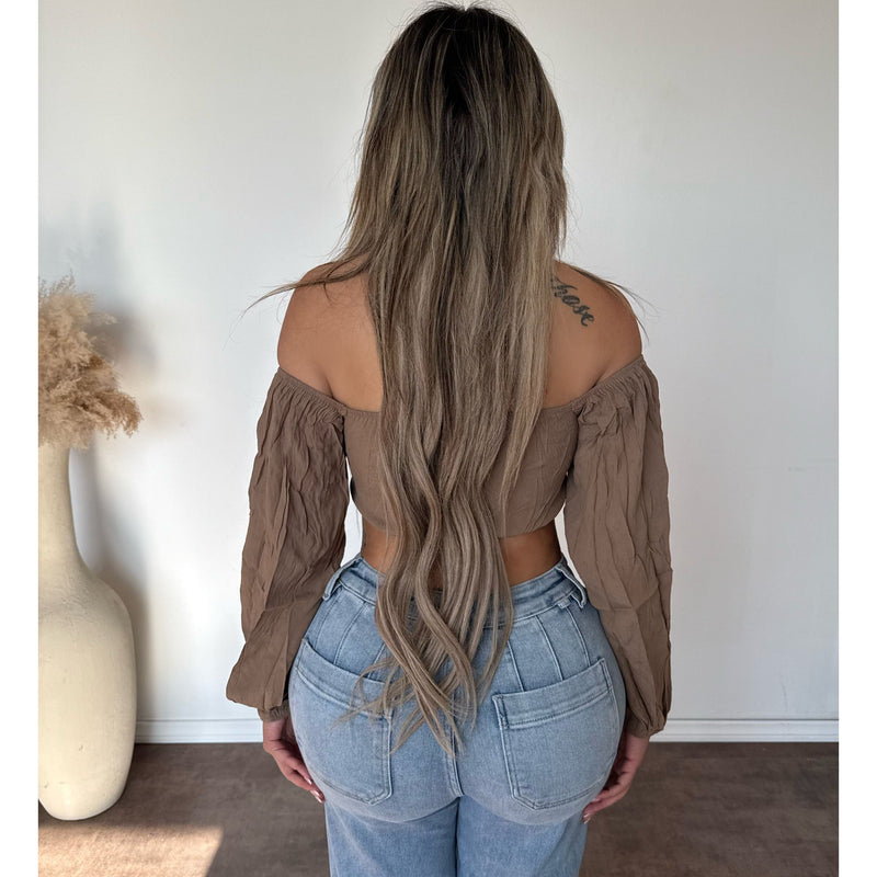 Amelia Rib Runched Long Sleeve Top (Taupe)