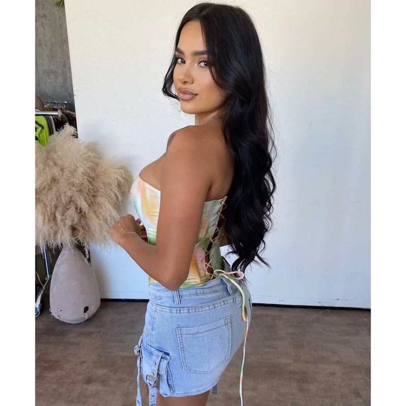Alyssa Sleeveless Top W Clear Shoulder Strap (Marina Blue)