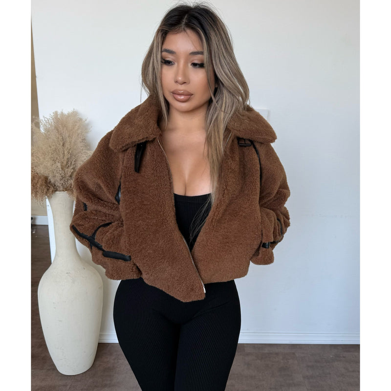 Kayte Crew Neck Long Sleeve Top (Brown)