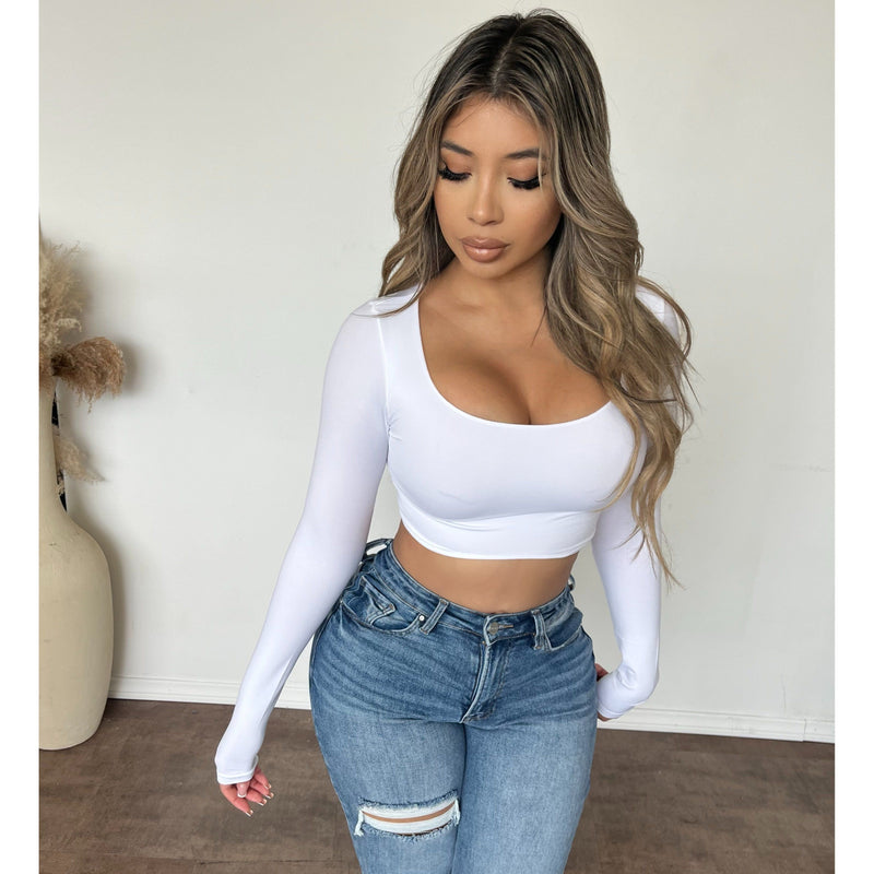 Makayla Deep V Neck Long Sleeve Top (Black)