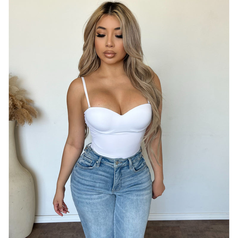 Celena Stitch Detail V Neck Bodysuit (Black)
