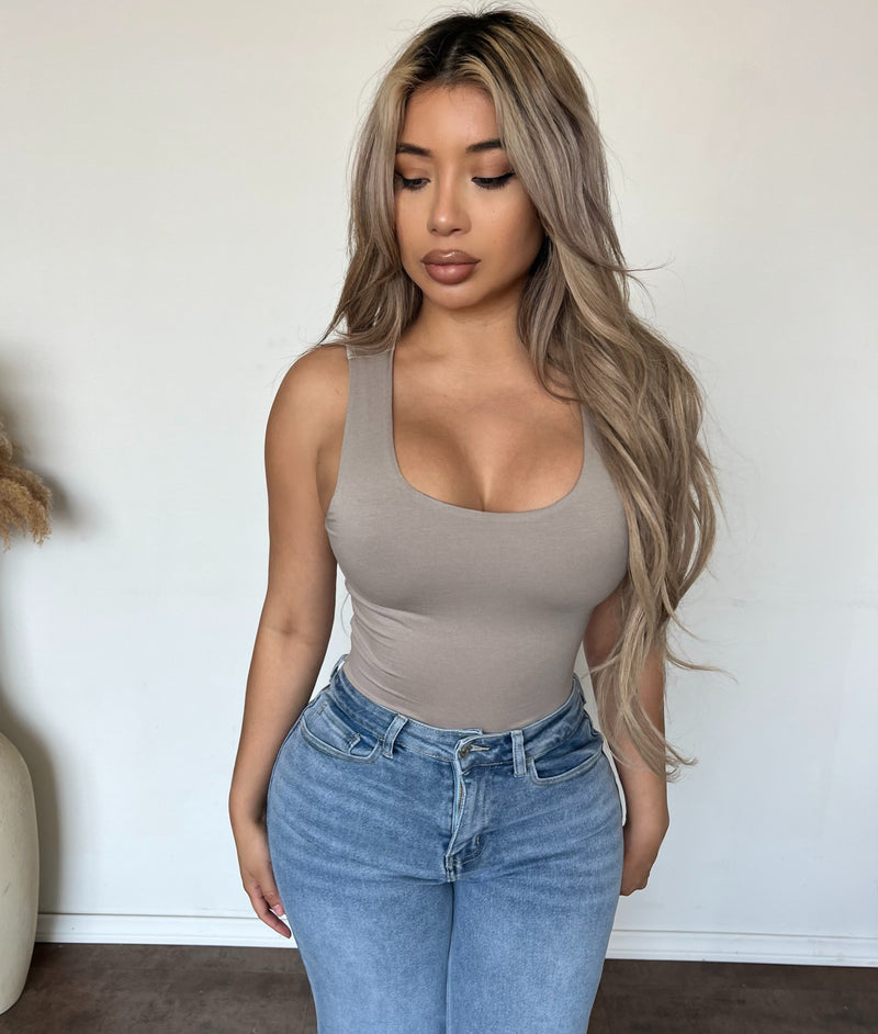 Gigi V Neck Long Sleeve Bodysuit (Mocha)