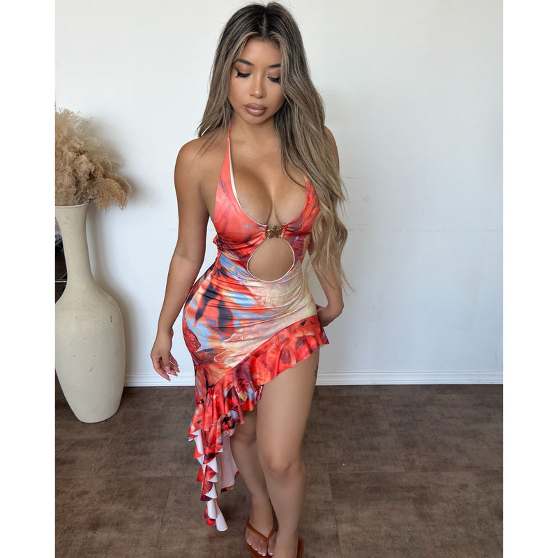 Emily Tropical Halter Neck Dress (Blue/Green)