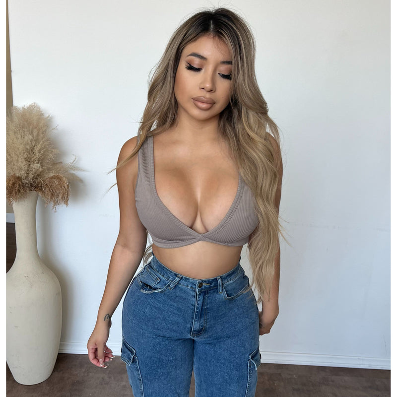 Stacy V Neck Cami Top (Brown)