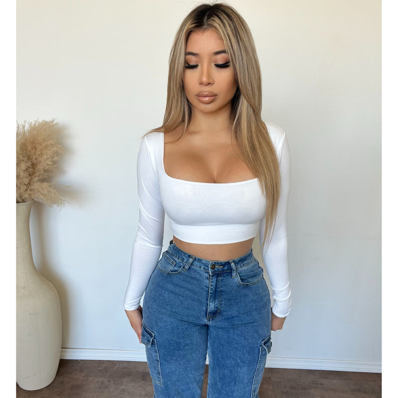 Ally Long Sleeve Square Neck Crop Top (Off White)