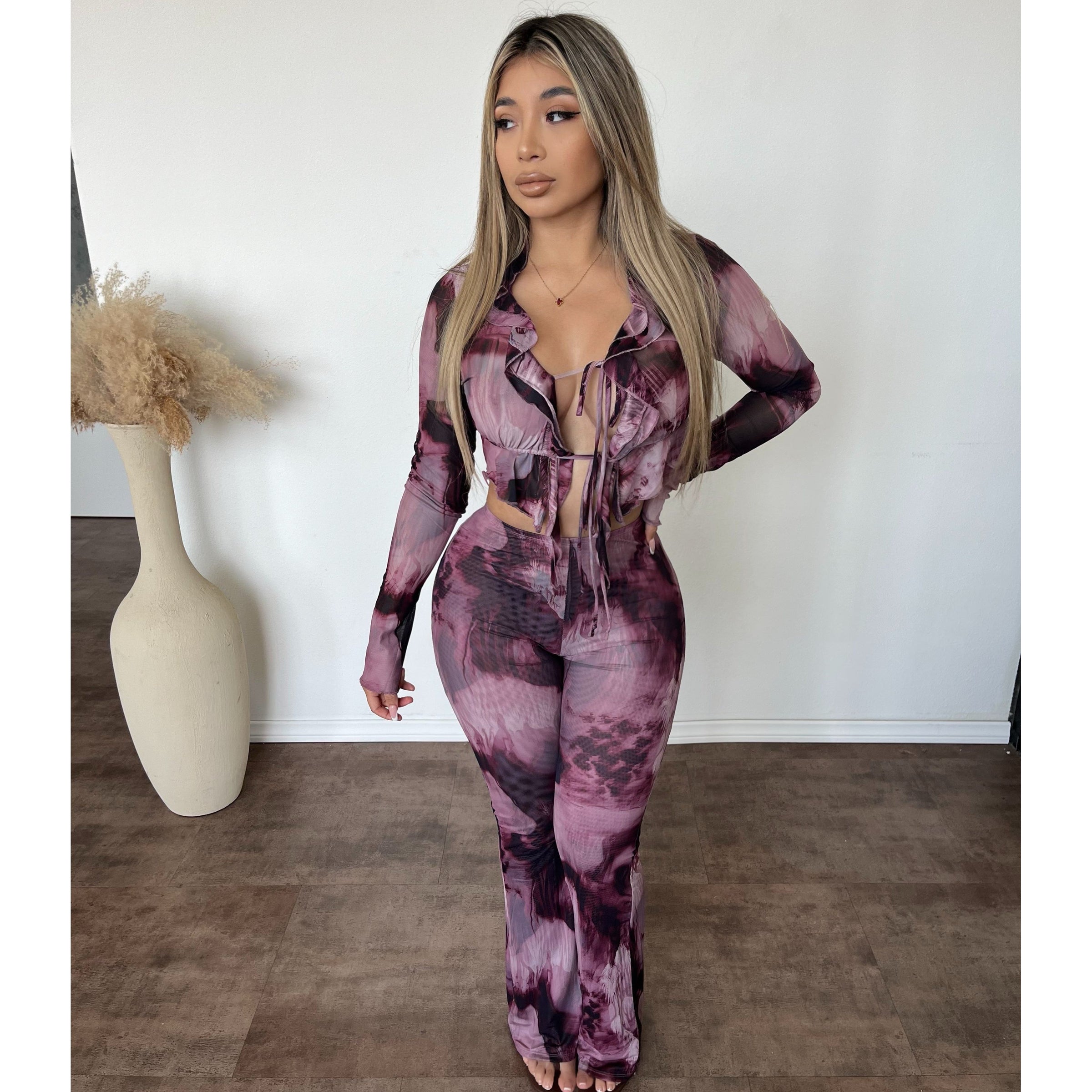 Norissa Mesh Matching Set (Purple/Burgundy)