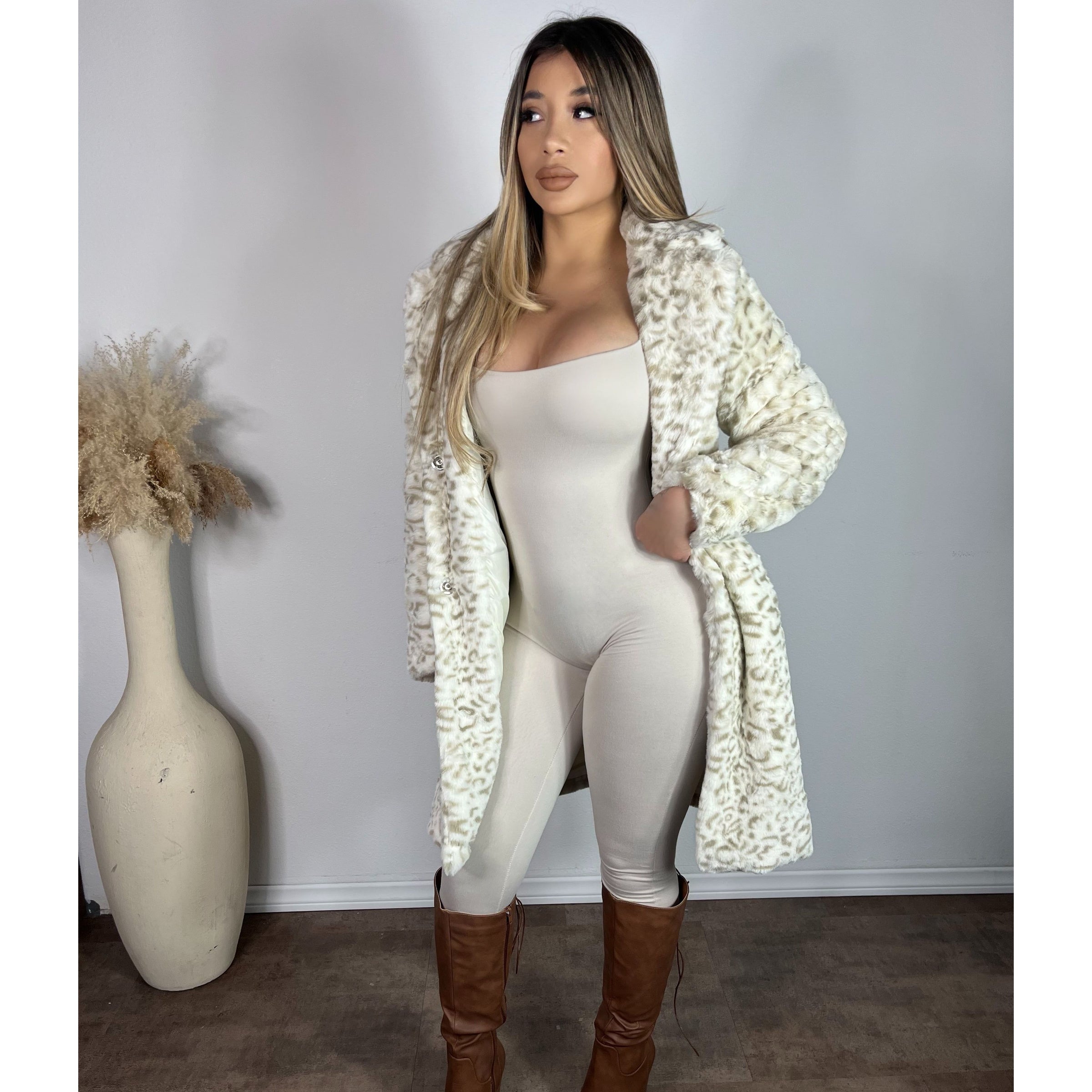 Selena Leopard Coat (White/Leopard)